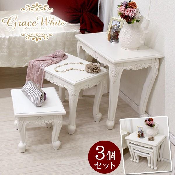 サイドテーブル おしゃれ 北欧 ソファーサイドテーブル ベッドサイドテーブル ネストテーブル コーヒーテーブル 3点セット 白 アンティーク風 グレイスホワイト