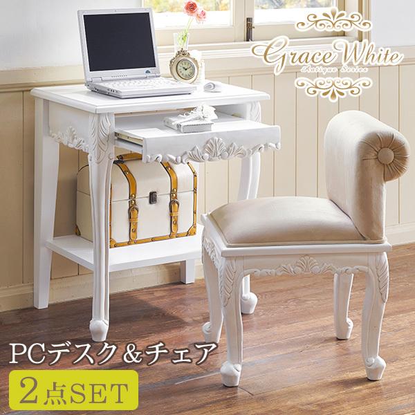 デスク チェアセット おしゃれ 机 椅子 木製 テレワーク 作業台 パソコンデスク PCデスク アンティーク調 猫脚 グレイスホワイト 幅63cm