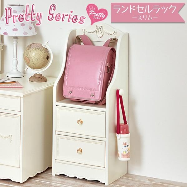ランドセルラック 白 ホワイト 完成品 ランドセル収納ラック スリムタイプ 幅43cm Pretty プリティシリーズ 姫系 姫系家具
