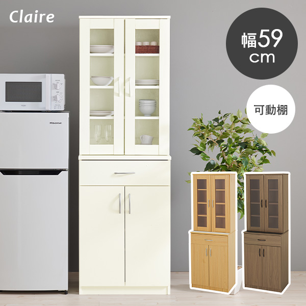 食器棚 スリム キッチンラック 一人暮らし キッチン収納 棚 ラック ガラス扉 引き出し 可動棚 大容量 扉付き キッチンボード ハイタイプ クレア