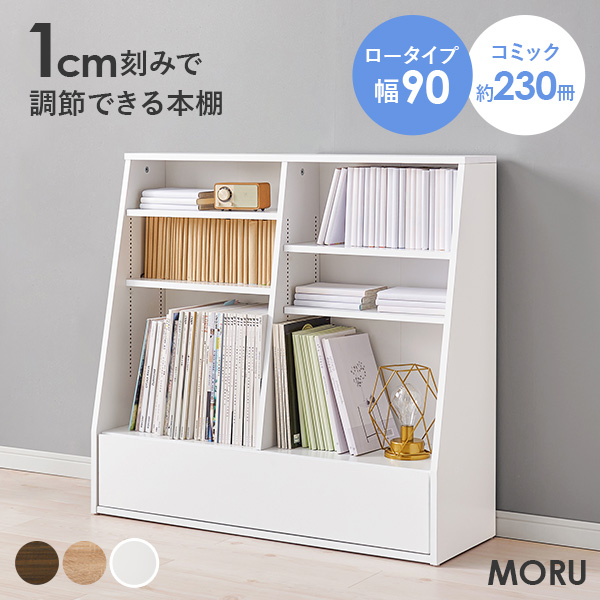 本棚 大容量 スリム 多機能 幅90 薄型 マガジンラック ブックラック おしゃれ 漫画 収納 棚 ラック 収納棚 推し活 ホワイト ブラウン 高さ調節 モル