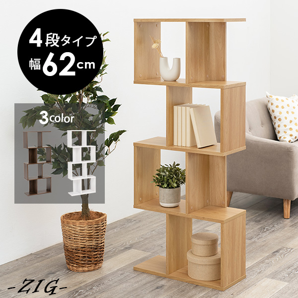 オープンラック 白 スリム ワイド シンプル インテリア 収納 4段 一人暮らし 新生活 おしゃれ 可愛い 本棚 ジグ 幅62cm