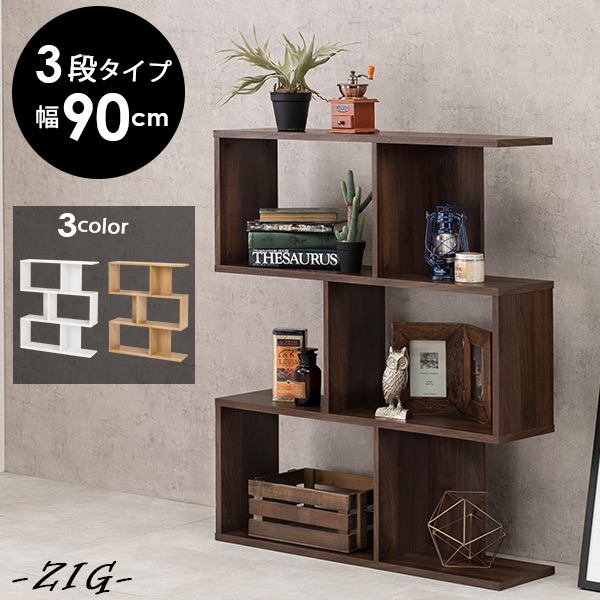 オープンラック 白 スリム ワイド シンプル インテリア 収納 3段 一人暮らし 新生活 おしゃれ 可愛い 本棚 ジグ 幅90cm