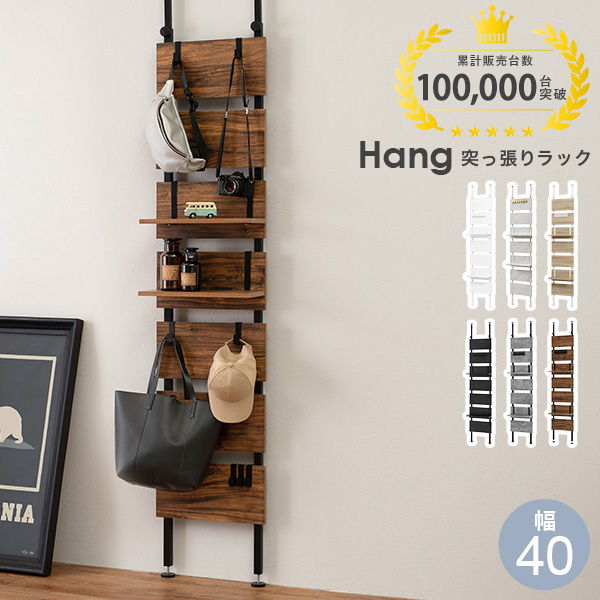 突っ張りラック 突っ張り棚 突っ張り棒 棚 壁面収納 突っ張り スリム キッチン おしゃれ ラック リビング 北欧 壁面収納家具 一人暮らし 幅40cm Hang ハング