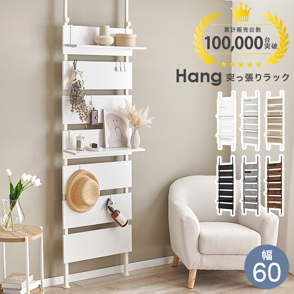 突っ張りラック 突っ張り棚 突っ張り棒 棚 壁面収納 突っ張り スリム キッチン おしゃれ ラック リビング 北欧 壁面収納家具 一人暮らし 幅60cm Hang ハング