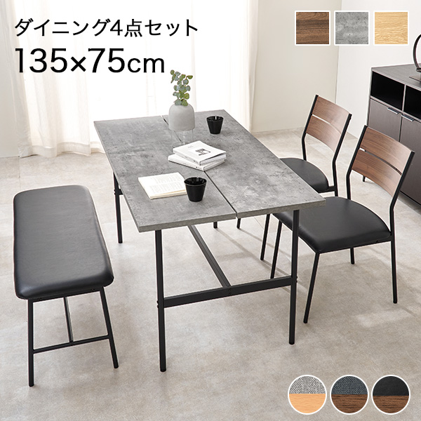 ダイニングテーブルセット 4人 ダイニング おしゃれ 4点 木目調 石目調 テーブル チェア 長方形 食卓 椅子 4点セット ベンチ 北欧 肘なし