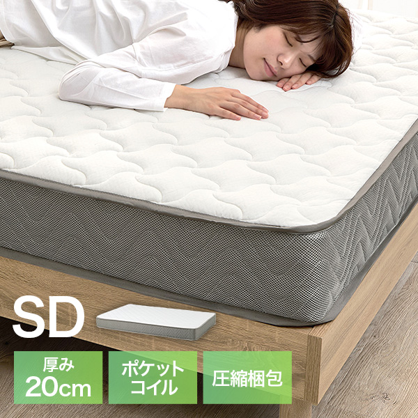 マットレス セミダブル ポケットコイルマットレス ポケットコイル 柔らかめ ベッドマットレス 圧縮 寝具 厚め 白 ポケット コイル 引っ越し 新生活