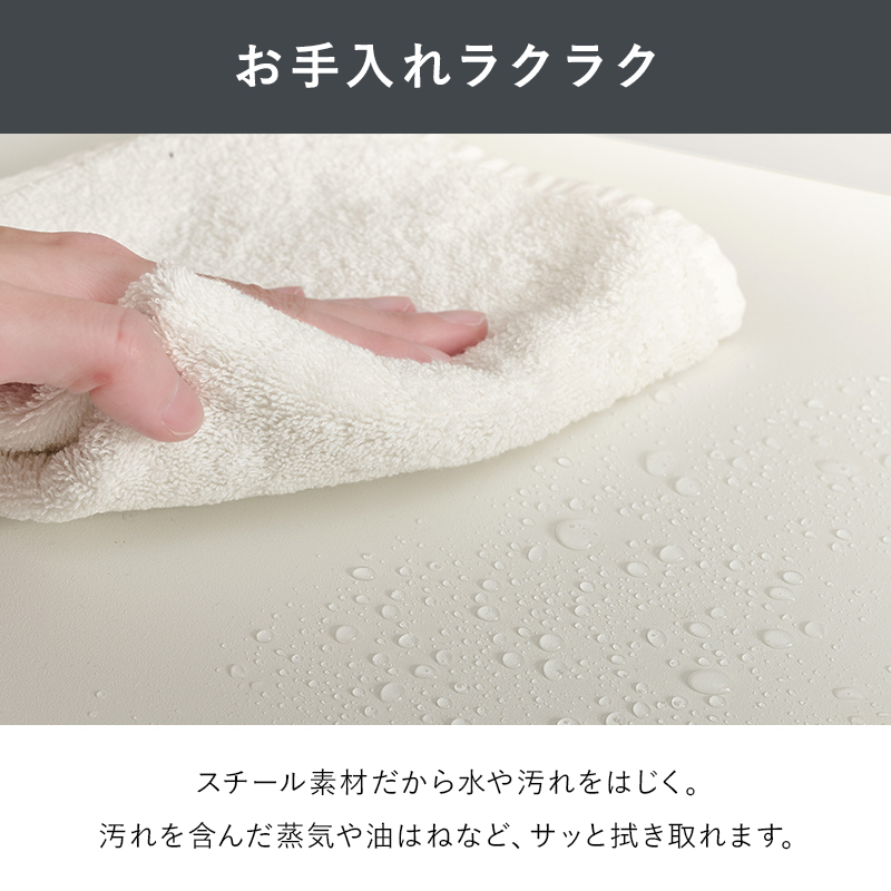 油ハネなどの汚れもサッとひと拭き。いつでも清潔に保てます。