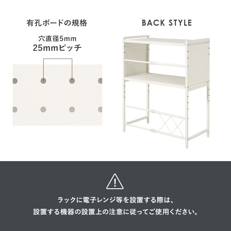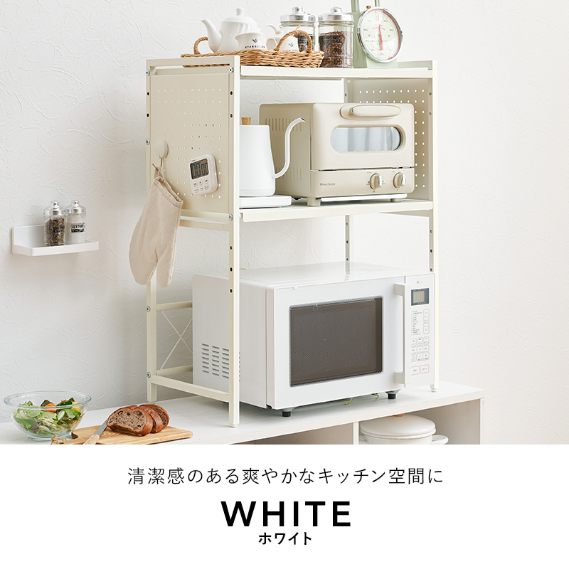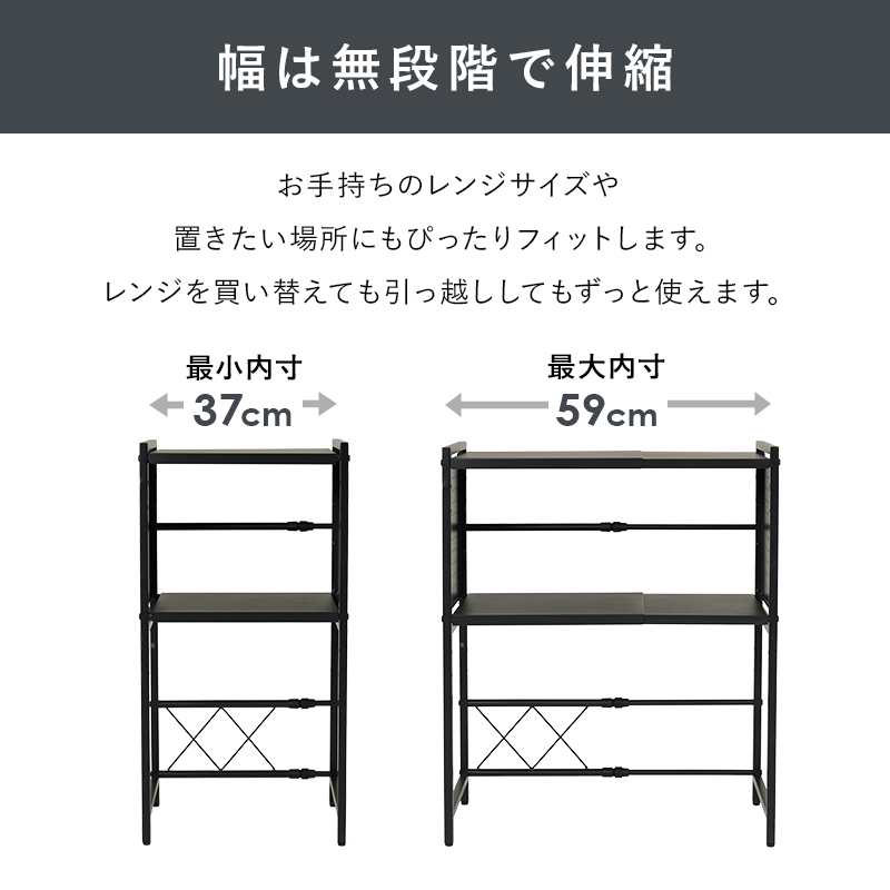縦も横も調節できる電子レンジ上伸縮ラック。