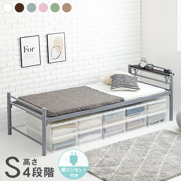 ベッド シングル 安い パイプベッド ベッドフレーム 宮付き 収納 白 シングルベッド ベッド下収納 おしゃれ シンプル 脚付き 一人暮らし アースカラー neo ネオ