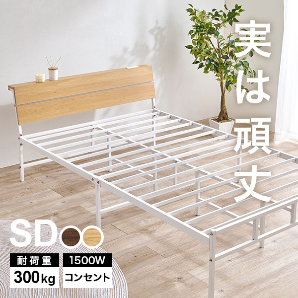 ベッド ベッドフレーム セミダブル 収納 パイプベッド セミダブルベッド 宮付き コンセント付き おしゃれ 安い ローベッド ベット 耐荷重300kg 頑丈