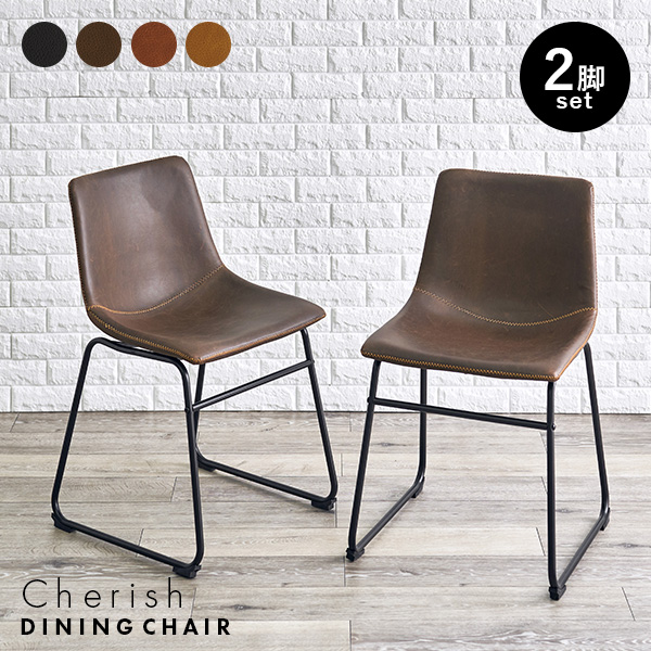 まるで本革のような合成皮革を使用した、ヴィンテージ風チェア「チェリッシュ」2脚セット。