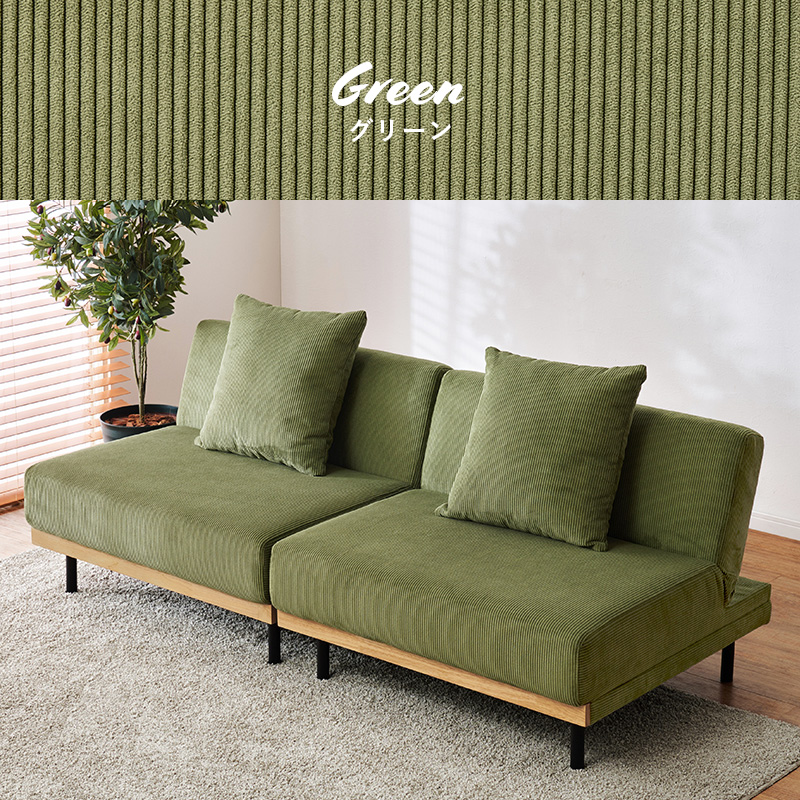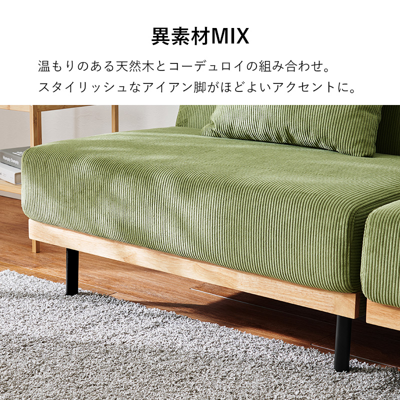 コーデュロイ生地×細身のスチール脚×天然木フレームがおしゃれなソファベッド。