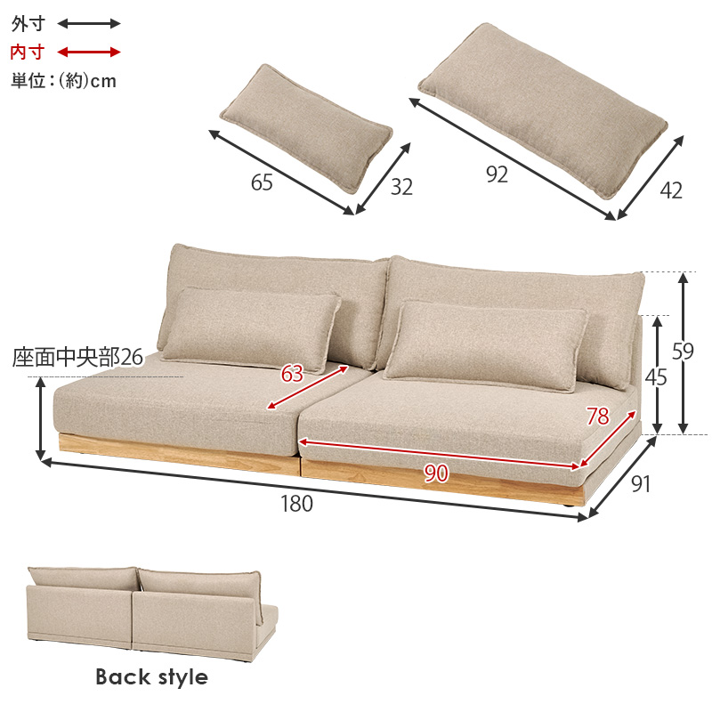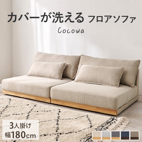 ソファー ソファ 3人掛け 3人 洗える 3人がけ ローソファ フロアソファ 北欧 おしゃれ ロー 木製フレーム シンプル 分割 肘なし クッション付き ココワ