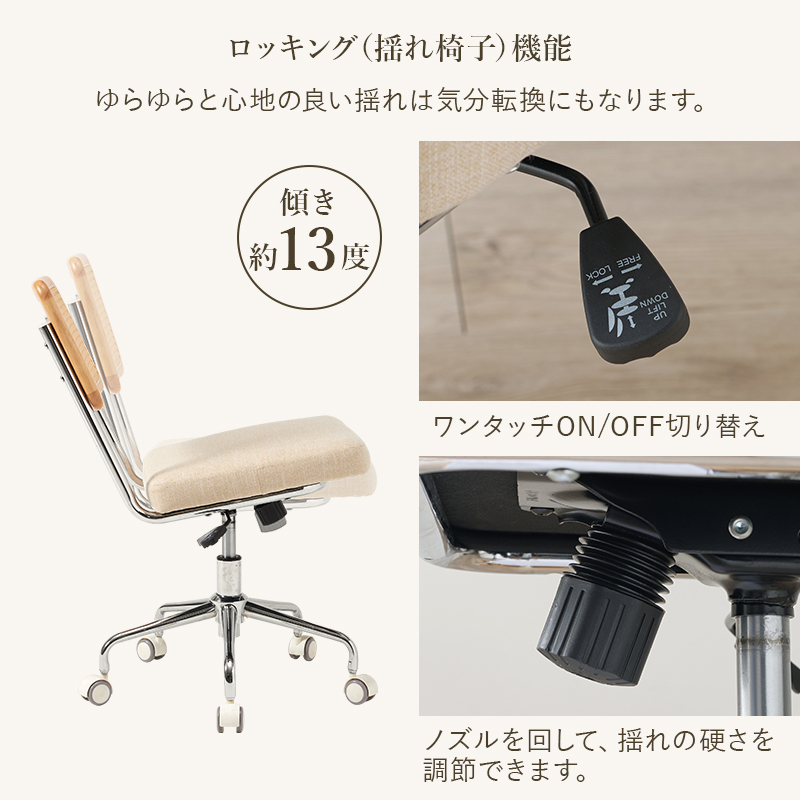 さらに高さ調節機能とロッキング機能も搭載。