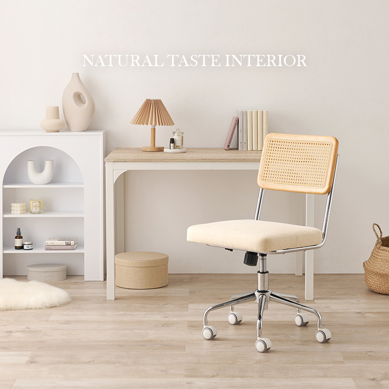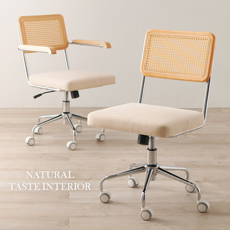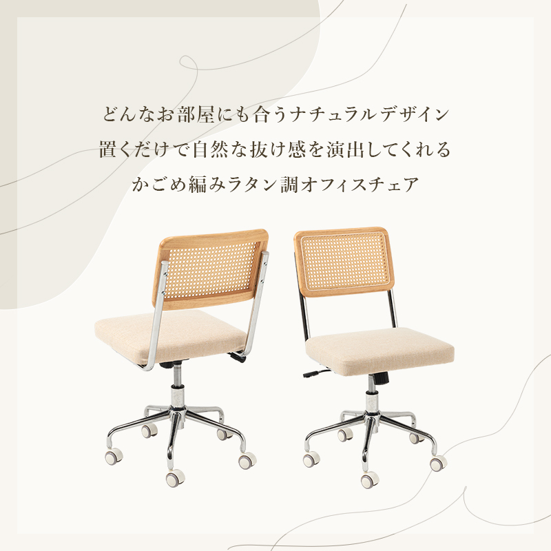 ラタン調の編み目が可愛いオフィスチェア。