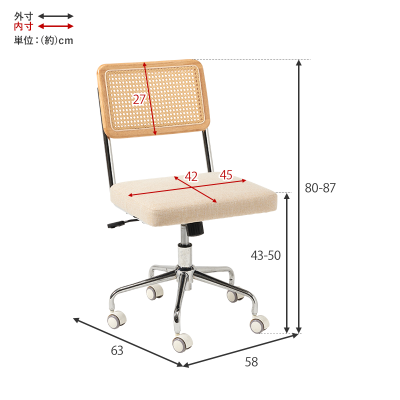 【商品サイズ(約)】幅58×奥行63×高さ80〜87cm