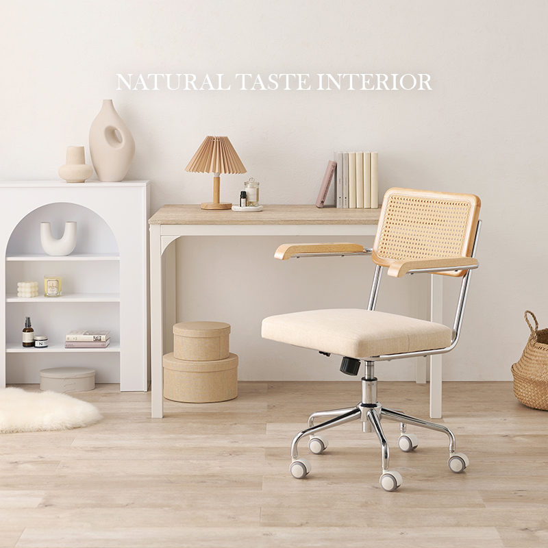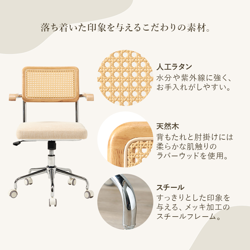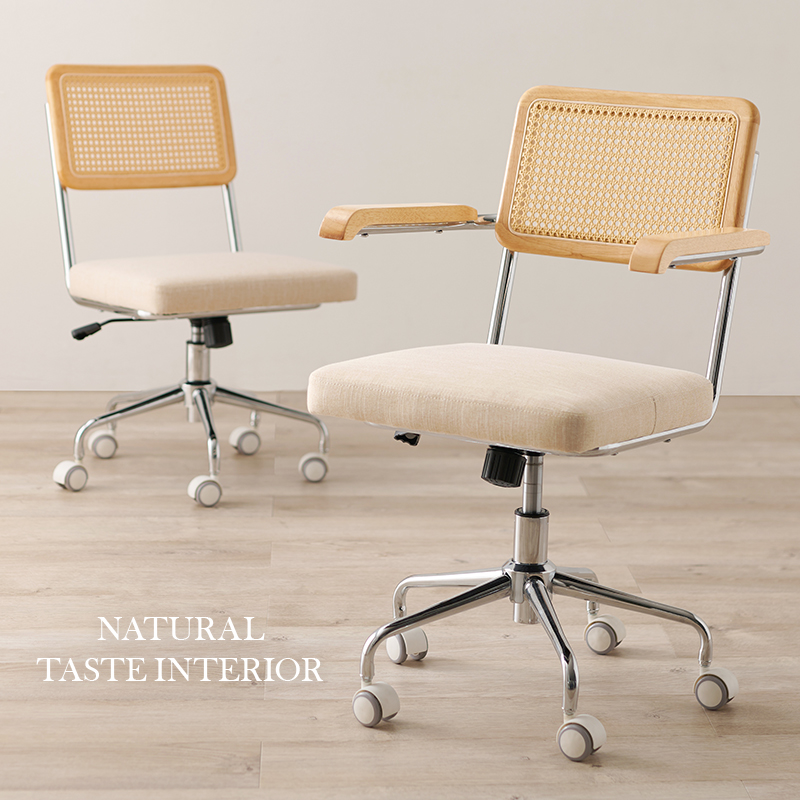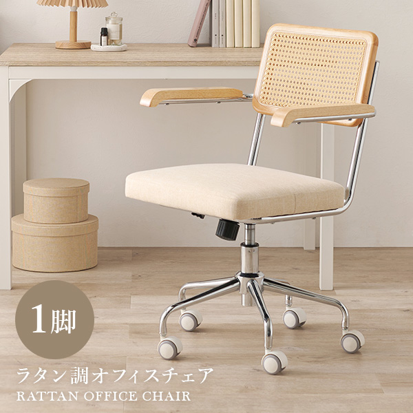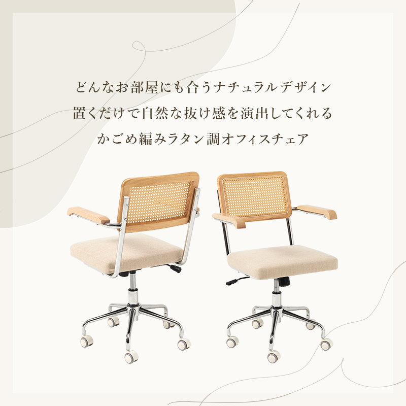 ラタン調の編み目が可愛いオフィスチェア。