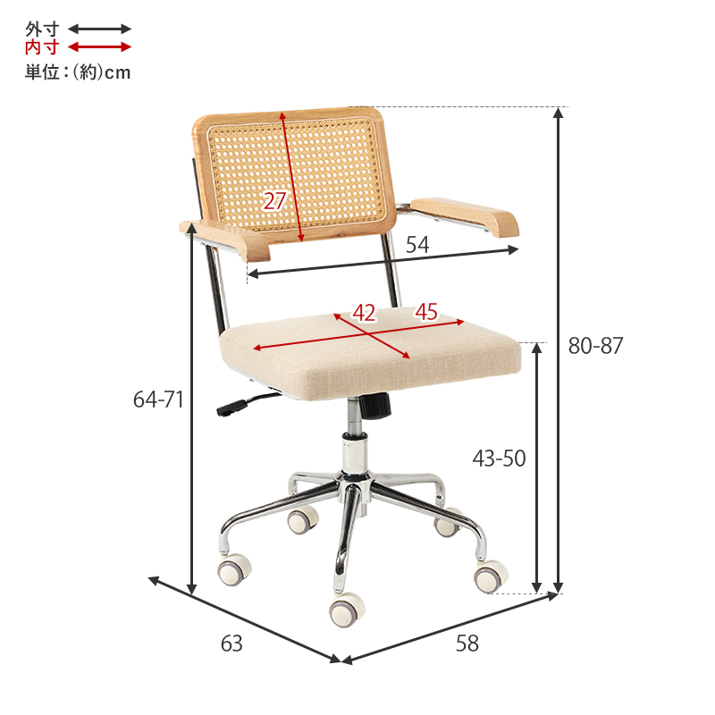 【商品サイズ(約)】幅58×奥行63×高さ80〜87cm