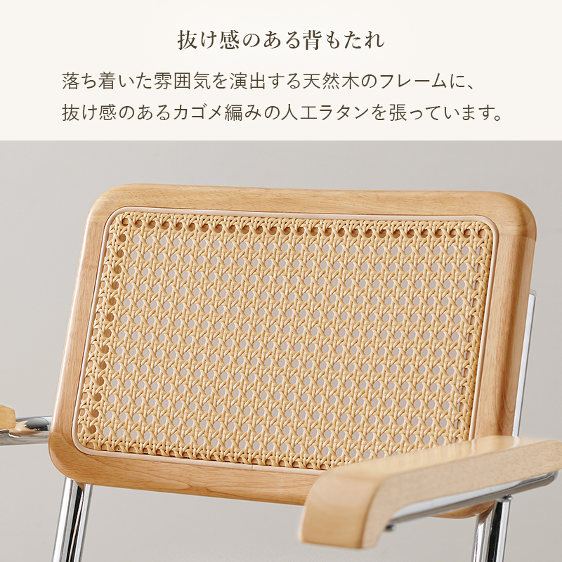 人工ラタン×天然木の組み合わせが柔らかい印象を与えるので、