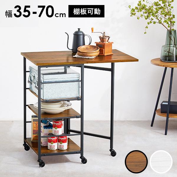 キッチンワゴン キッチン収納 キャスター付き 高さ調節 可動棚 棚付き 隙間収納 バタフライワゴン 折りたたみ シンプル オシャレ 高さ70cm 幅37cm 幅70cm