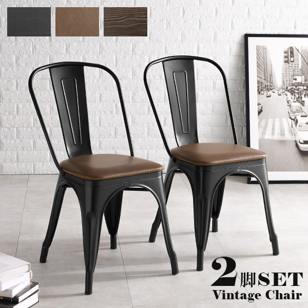 座面を選べる、ヴィンテージ風チェア2脚セット。