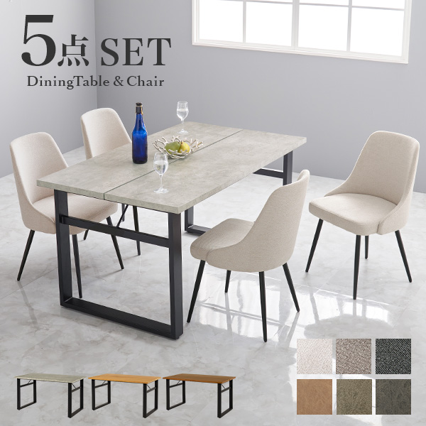 ダイニングテーブルセット 4人 5点 長方形 テーブル ヴィンテージ レザー 風 チェア 木 コンクリート おしゃれ スチール 収納 モダン ロの字脚