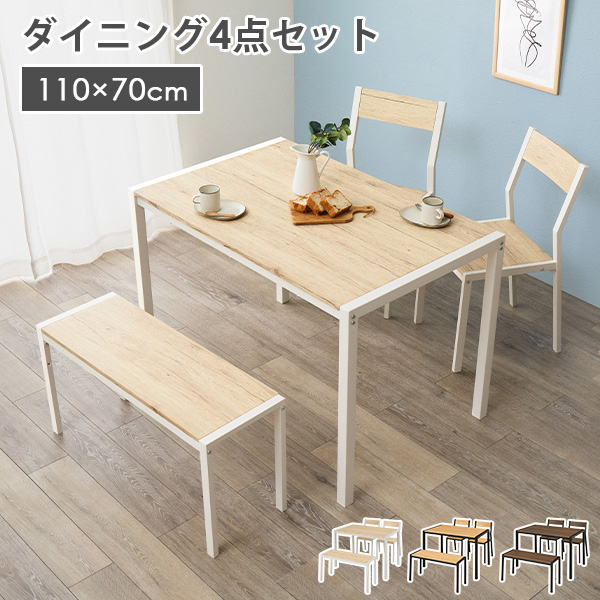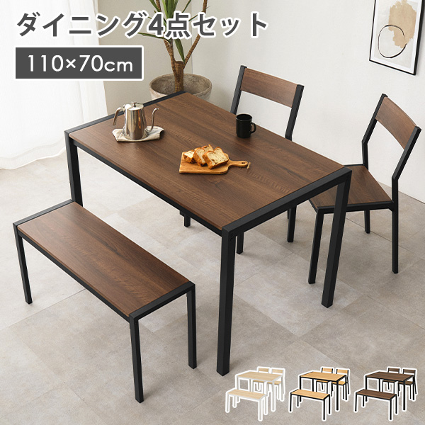 ダイニングテーブルセット 4点セット 幅110cm 4人用 ベンチ付き 長方形 木目調 アイアン チェア付き コンパクト 省スペース おしゃれ 北欧