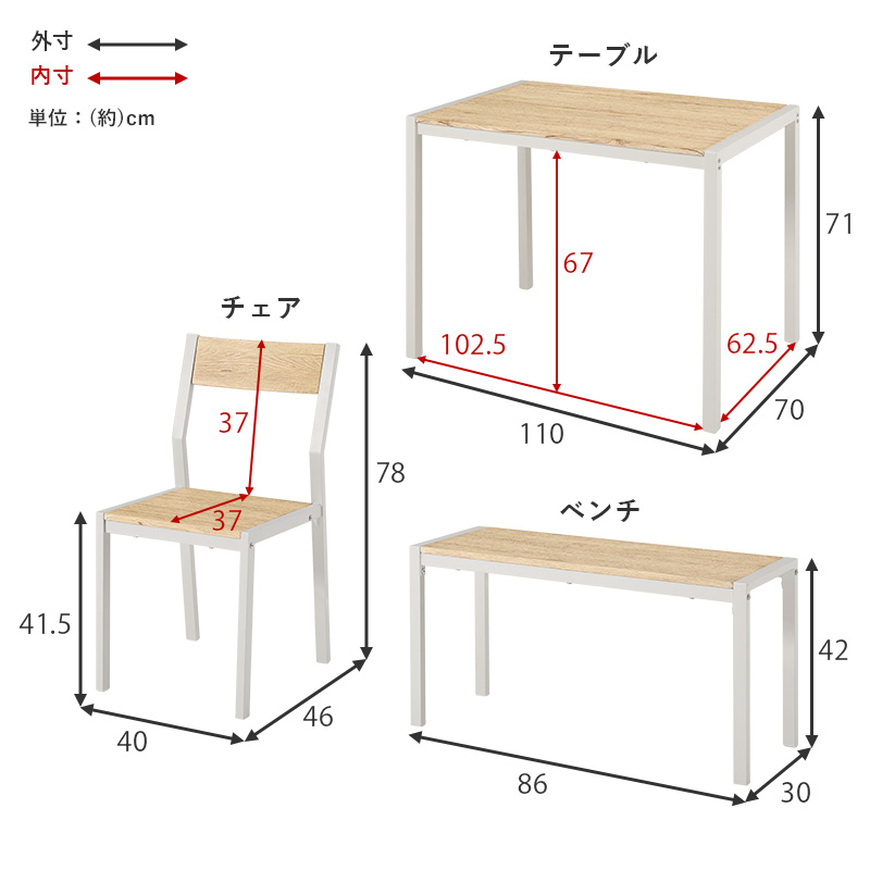 家族用ダイニングセット、ベンチ付きダイニング、4人用食卓セットをお探しの方におすすめです。