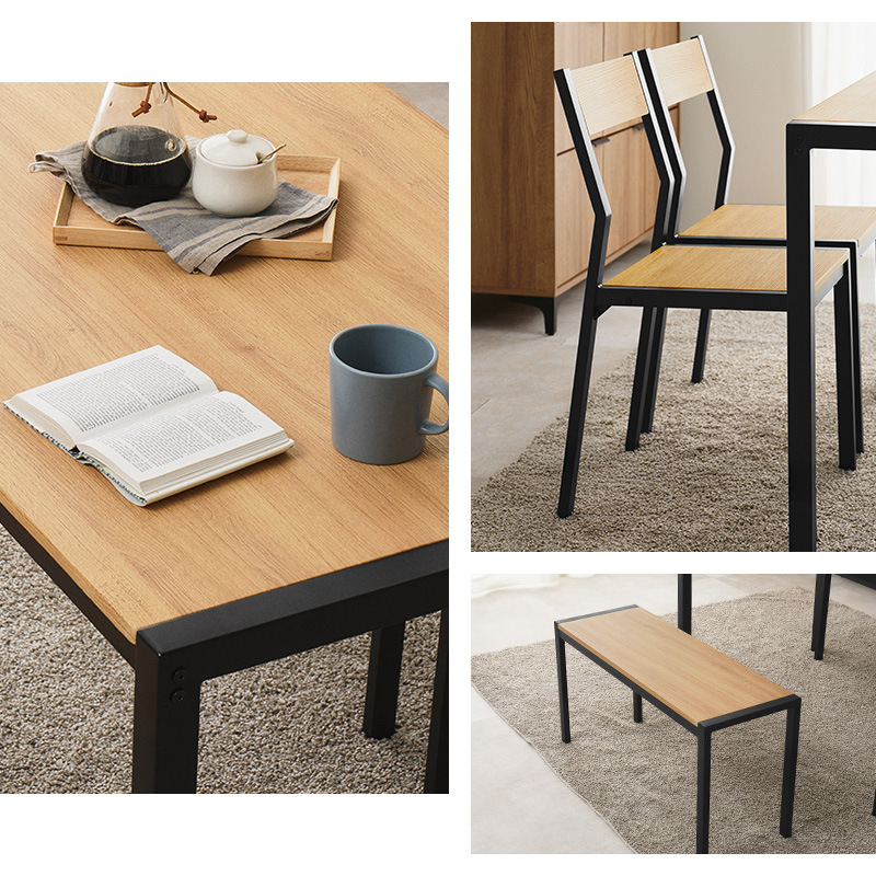 チェア2脚+ベンチの4点セット(テーブル+椅子+ベンチ)で、人数やシーンに合わせて柔軟に使えるのも魅力。