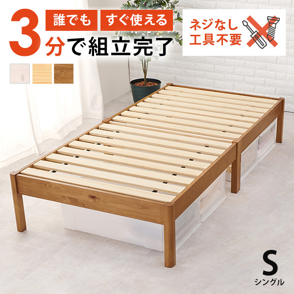 ベッド ベッドフレーム シングル 安い 収納 すのこ 白 おしゃれ 木製 組み立て簡単 組立 工具不要 キング シングルベッド すのこベッド 宮無し ベット ネジレス