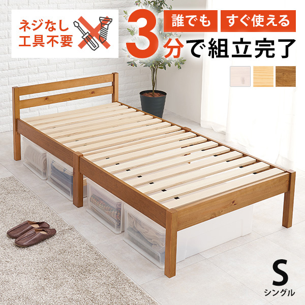 ベッド ベッドフレーム シングル 安い 収納 すのこ 白 おしゃれ 木製 宮付き 組み立て簡単 組立 工具不要 コンセントなし すのこベッド ベット ネジレス