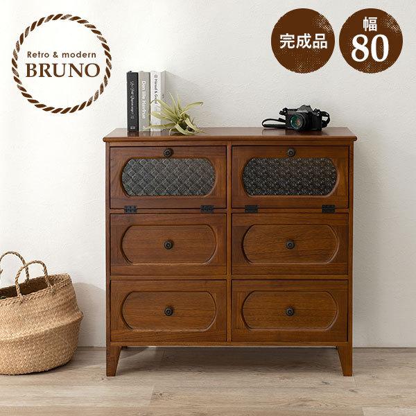 チェスト 木製 おしゃれ レトロ 完成品 3段 80 キャビネット アンティーク 木製 すりガラス 収納 棚 引出し リビング収納 花ガラス ブルーノ