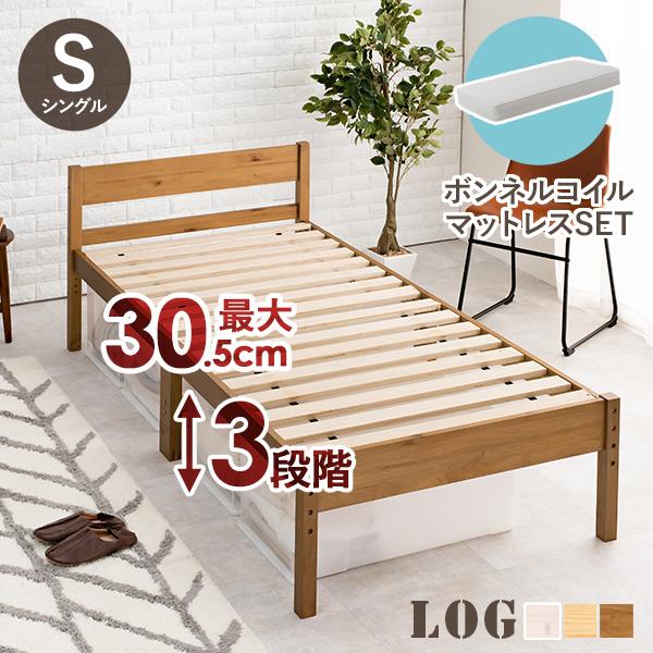 ベッド シングル マットレス付き ベッドフレーム すのこ 木製 コンセント マットレス 高さ調節 安い 木製 白 ベット ポケットコイル ログ