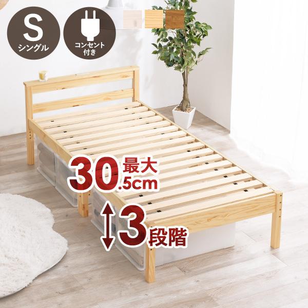 ベッド シングル すのこベッド ベッドフレーム 安い 北欧 おしゃれ 収納 宮付き 高さ調節 シングルベッド ベッド下収納 スノコベッド 白 木製 ベット ログ