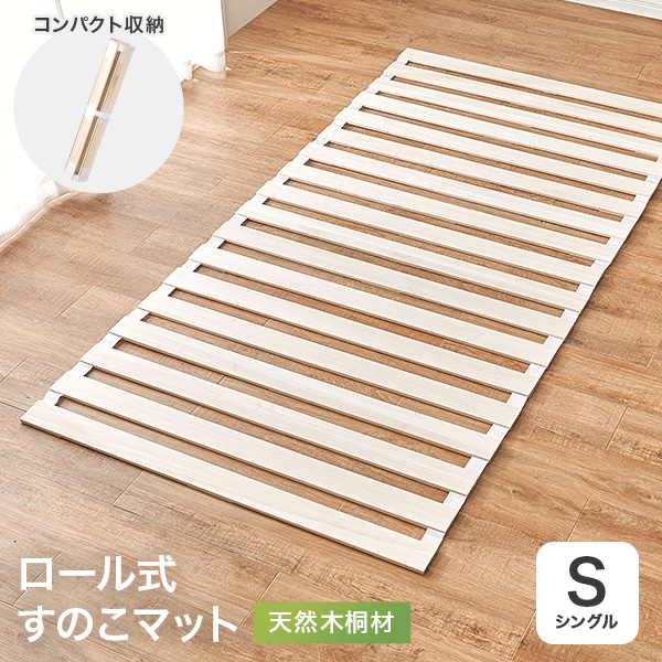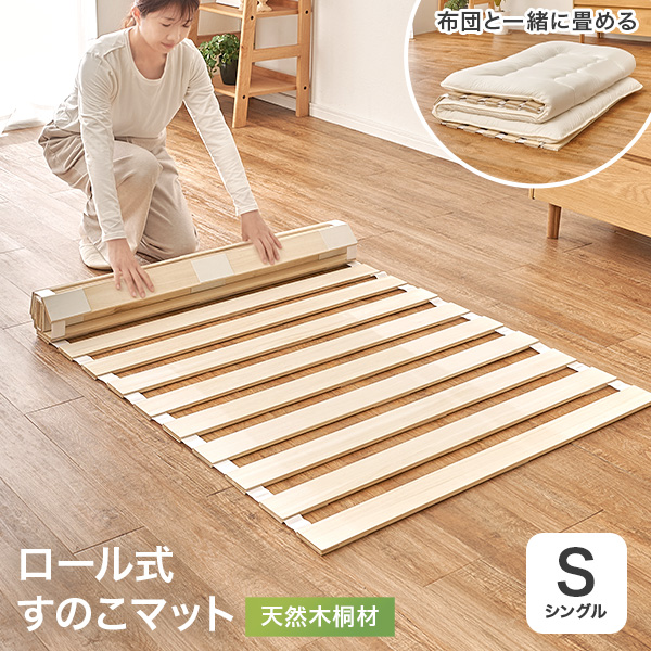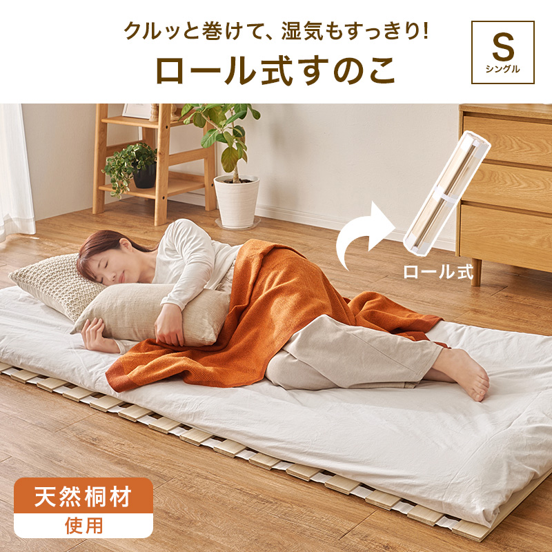ベッド 収納 シングル ロール式 すのこ ベッドフレーム ベット シングルベッド コンパクト収納 通気性 湿気対策 木製 折りたたみ 桐 天然木