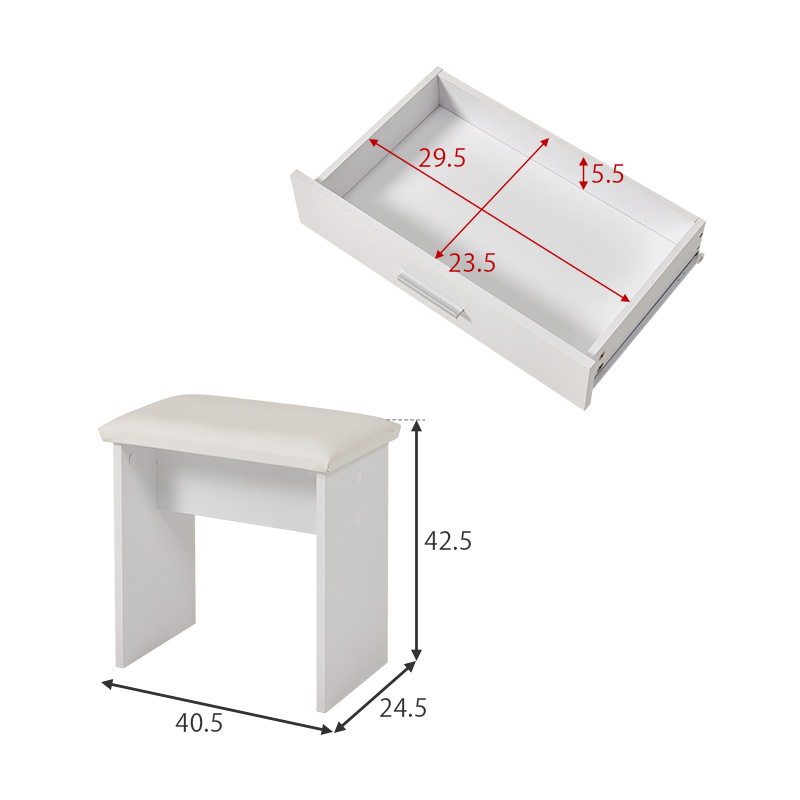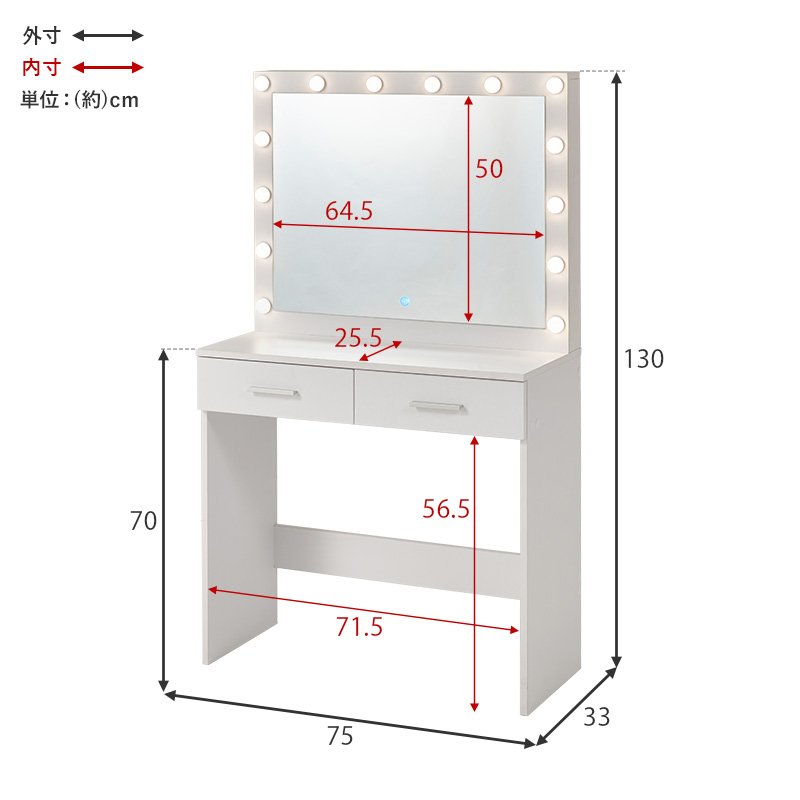 ドレッサー ライト付き 白 鏡台 シンプル コスメ スツール デスク 机 おしゃれ ホワイト 大型ミラー ワンルーム コンパクト スリム シルカ
