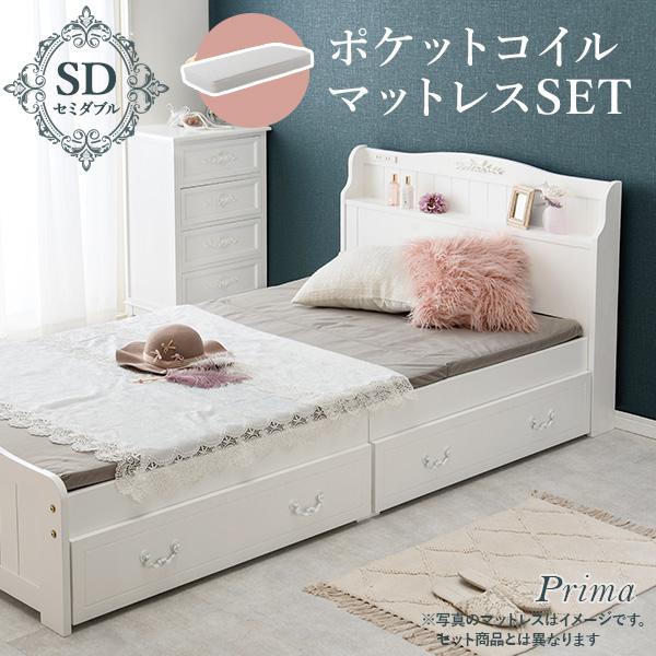 ベッド マットレス付き セミダブル マットレスセット ポケットコイル 圧縮 可愛い かわいい 白 収納 引き出し 姫系 すのこ コンセント プリマ