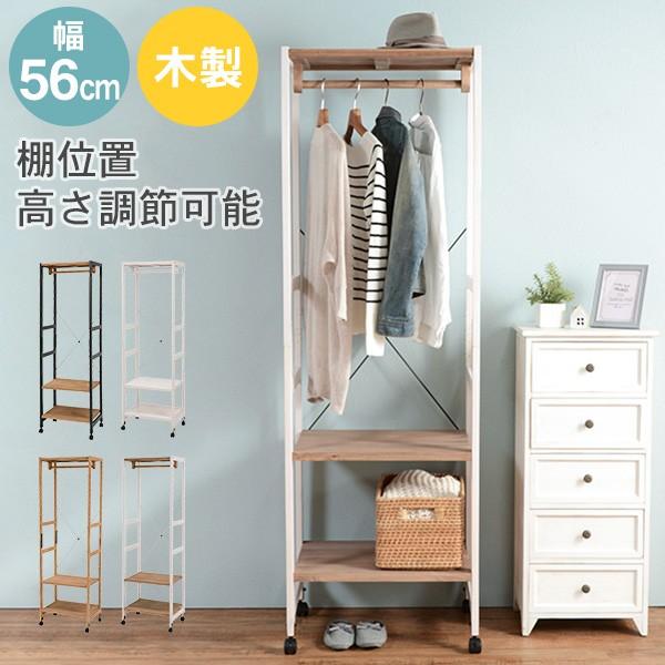 ハンガーと棚板の高さが変えられる幅56cmの天然パイン材のハンガーラック。