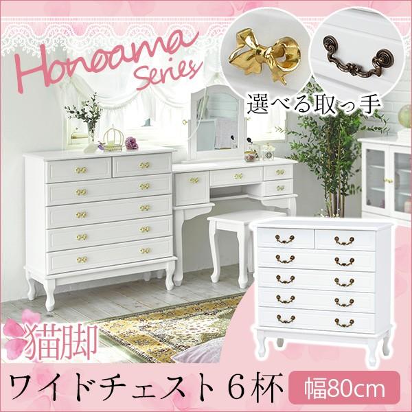 チェスト 木製 リビングチェスト 木製チェスト おしゃれ 白 ホワイト 姫系家具 大人ガーリー honoamaシリーズ ほの甘 猫脚ワイドチェスト 6杯