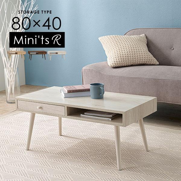 テーブル ローテーブル おしゃれ 木製 北欧 収納 センターテーブル 引き出し ミニッツアール 80x40cm