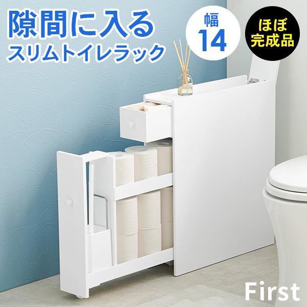 トイレ 収納 スリム トイレットペーパー 収納棚 トイレラック おしゃれ トイレ掃除 トイレブラシ 隙間収納 白 ホワイト 完成品 幅14 First ファースト