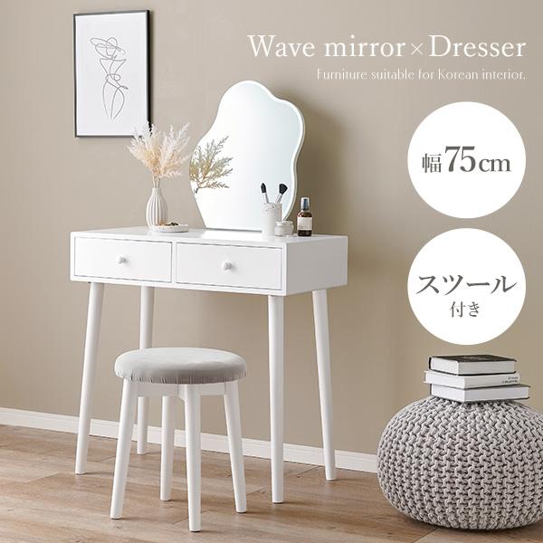 ドレッサー おしゃれ 北欧 ドレッサーセット ウェーブミラー 韓国 インテリア 家具 白 韓国インテリア ホワイト 化粧台 コンパクト 鏡台 スツール付き