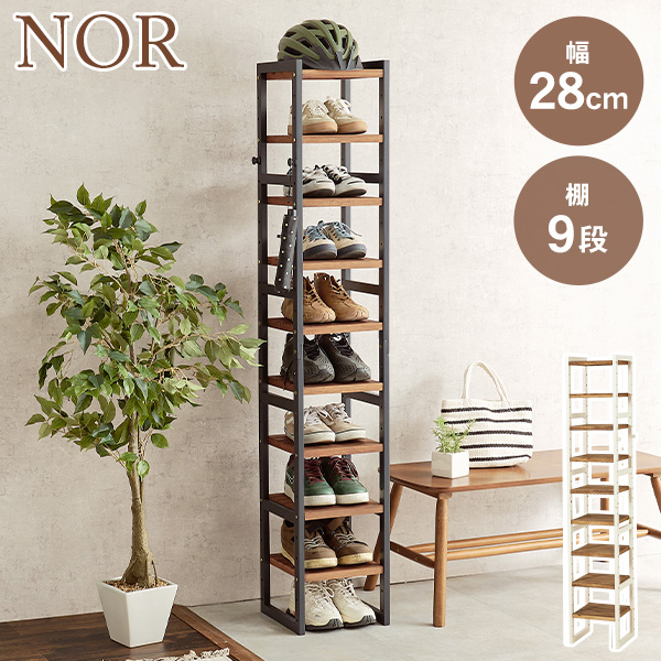 シューズラック スリム シューズボックス 下駄箱 靴箱 おしゃれ 北欧 木製 9段 薄型 収納 大容量 安い diy 狭い玄関 省スペース 玄関収納 スリッパ 幅28cm ノア