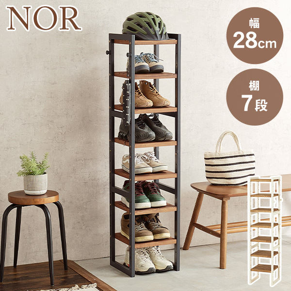 シューズラック スリム シューズボックス 下駄箱 靴箱 おしゃれ 北欧 木製 7段 薄型 収納 大容量 安い diy 狭い玄関 省スペース 玄関収納 スリッパ 幅28cm ノア