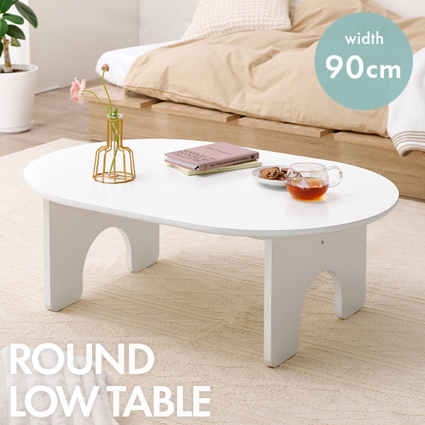 ころんとしたシルエットが可愛い、オーバル型のホワイトローテーブル。