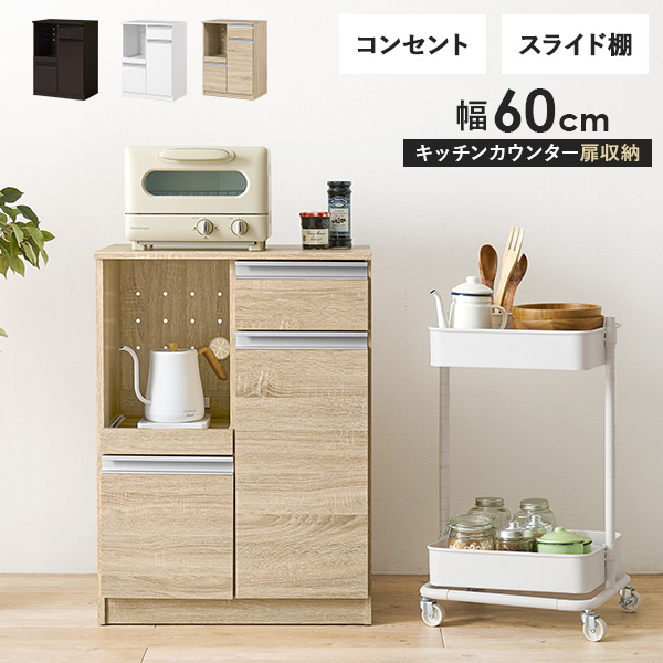 キッチンカウンター 収納 キッチン 棚 ラック スリム レンジ台 キッチン収納棚 おしゃれ キッチン収納ラック Find ファインド 扉収納タイプ 幅60cm