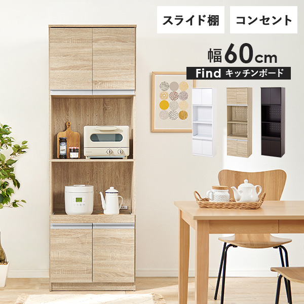 キッチンボード おしゃれ 白 キッチン 収納棚 食器棚 収納 引き出し レンジ台 スライド棚 キッチン収納 レンジボード 一人暮らし ファインド 幅60cm