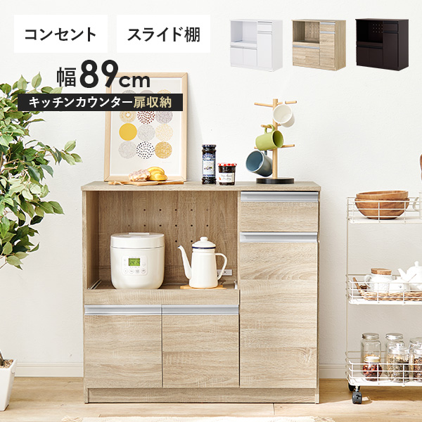 キッチンカウンター 収納 キッチン 棚 ラック スリム キッチン収納棚 おしゃれ キッチン収納ラック 食器棚 引き出し レール フラット 幅89cm
