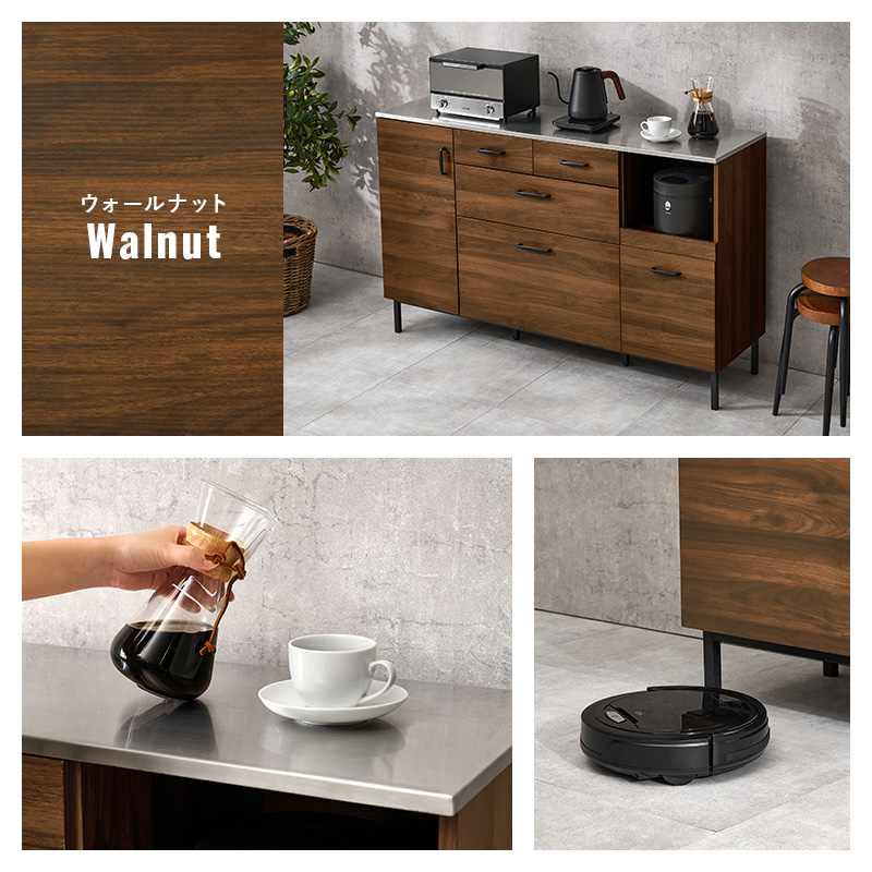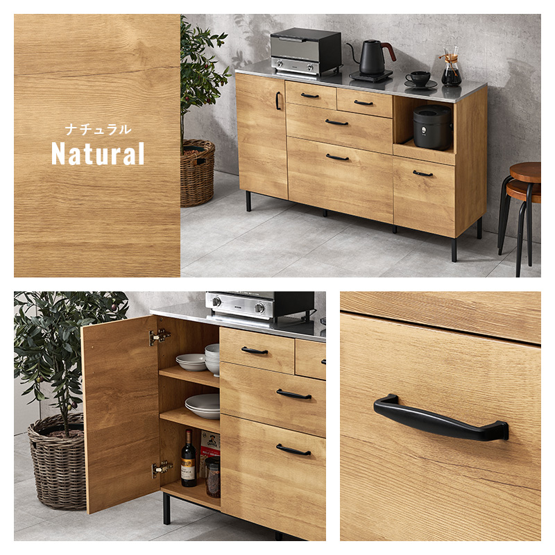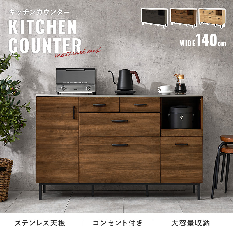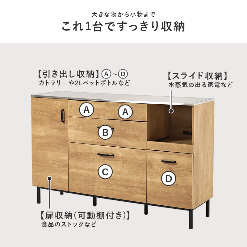 キッチンカウンター 140 下収納 ステンレス天板 間仕切り キッチンキャビネット キッチンボード 食器棚 ロータイプ レンジ台 キッチンラック 収納 ステンリア